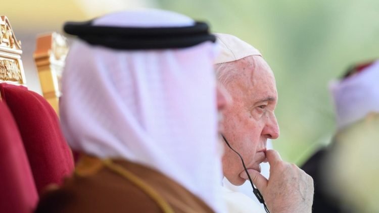 Although here in Awali, in the headquarters of the King of Bahrain, we are a long way from the bloody conflict that has broken out in the heart of Christian Europe, Pope Francis has returned to call for an end to the war in Ukraine. The island in the Gulf is far from Eastern Europe, but is close to Yemen, another one of the ‘pieces’ of that unique Third World War, the Pope speaks of increasingly often, and with growing concern.