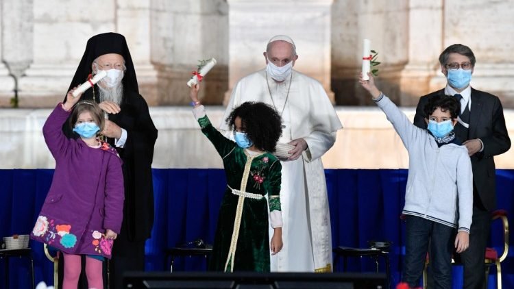 Pope Francis and leaders of world religions gathered in Rome on Tuesday to pray for peace and fraternity in a divided world. The international and interreligious Meeting to Pray for Peace was entitled “No one is saved alone. Peace and Fraternity”.