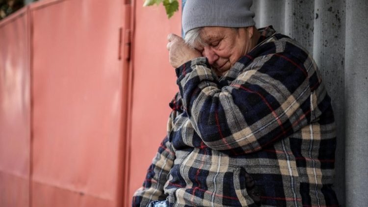 A female psychologist of the state emergency service accompanied a woman who could barely walk as she mourned her loved ones.